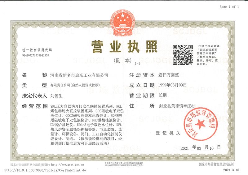 河南省新鄉(xiāng)市啟東工業(yè)有限公司始建于1987年,是專注研發(fā)、生產(chǎn)自動(dòng)化儀器儀表(主要與壓力容器、鍋爐等容器配套使用)的廠家。主要產(chǎn)品有液位計(jì)(磁敏雙色型、磁翻柱型等)系列、烤包器熄火聯(lián)控裝置系列、壓力容器快開門安全聯(lián)鎖保護(hù)裝置系列、鍋爐報(bào)警器系列。二十多年來,公司產(chǎn)品暢銷國內(nèi)并遠(yuǎn)銷俄羅斯、蒙古與東南亞,深得廣大用戶的信賴和好評。我們多年來致力于自動(dòng)化儀器儀表的研制生產(chǎn),公司現(xiàn)具有完善的生產(chǎn)、試驗(yàn)、檢測手段和設(shè)備。科技創(chuàng)新、誠信服務(wù),是我們不變的經(jīng)營理念,我們將以強(qiáng)有力的技術(shù)支持及售后竭誠為客戶提供良好的服務(wù)。  2012年我公司成功研發(fā)了KCL系列烤包器熄火聯(lián)控裝置,并于2013年2月2日榮獲中華人民共和國國家知識產(chǎn)權(quán)局辦法的《實(shí)用新型**證書》<**號:2021202257735>該產(chǎn)品廣泛應(yīng)用于唐鋼等大型鋼鐵企業(yè),為烤包器安全作業(yè)提供了有力的保障。  2002年我公司成功研發(fā)磁敏電子雙色液位計(jì)獨(dú)特的高亮度LED紅綠雙色顯示,獲得了專家的首肯和用戶的一致好評。在此基礎(chǔ)上我公司研發(fā)人員十年磨一劍,致力于XQFB-1防爆型磁敏雙色液位計(jì)的研發(fā),于2013年12月27日由國家防爆電器產(chǎn)品質(zhì)量監(jiān)督檢驗(yàn)中心檢驗(yàn)合格并頒發(fā)防爆合格證書<編號:cnex19.0883>。該產(chǎn)品性能得到了充分的發(fā)揮,廣泛應(yīng)用于含有Ⅱ類A·B級T1-T4組可燃?xì)怏w或蒸汽與空氣混合形成的爆炸性混合物的0區(qū)、1區(qū)危險(xiǎn)場所。連接用戶DCS或PLC系統(tǒng)實(shí)現(xiàn)遠(yuǎn)距離集中顯示和控制,從而實(shí)現(xiàn)節(jié)能、數(shù)字化管理。為用戶增加了一定的經(jīng)濟(jì)效益和社會(huì)效益,。2014年公司成功申請了夢潤儀表的logo,新的品牌新的形象,夢潤儀表是啟東的LOGO, 歡迎新老用戶前來洽談合作。  我們一如既往地注重科研的投入,憑借產(chǎn)品的不斷更新、加大科技含量,進(jìn)一步拓展市場。我們相信品質(zhì)成就未來,以過硬質(zhì)量、優(yōu)惠價(jià)格、完善的售后服務(wù)熱忱歡迎廣大客戶來我司視察指導(dǎo)、洽談業(yè)務(wù);精誠合作,共創(chuàng)輝煌!